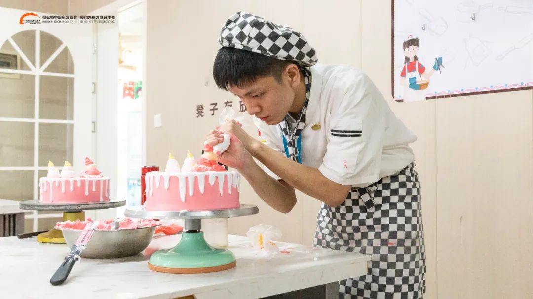 每完成一个烘焙产品,平均需要2-3个小时,能够很好地磨练耐心,让自己成为一个遇事不急躁的人。同时,烘焙是食品行业,卫生是首要条件,成为烘焙人能让你变得更爱干净、注重健康,提升自身整体素质,百利而无害。 厦门新东方烹饪学校2024西点专业春季班火热招生中,学西点烘焙没有特别的年龄和学历限制,喜欢就能学。各位男生们,如果你喜欢烘焙,想成为烘焙师,别再犹豫,快点来校报名吧!