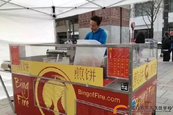 哦对了,别看就是个路边摊,还能刷信用卡,一套煎饼果子要七八美元 !瞬间高大上了有木有,你不得不承认人们对美食的热爱是无国界的!国外的KFC 流行到中国有人追捧。同样,在中国流行的小吃到了美国也有市场。