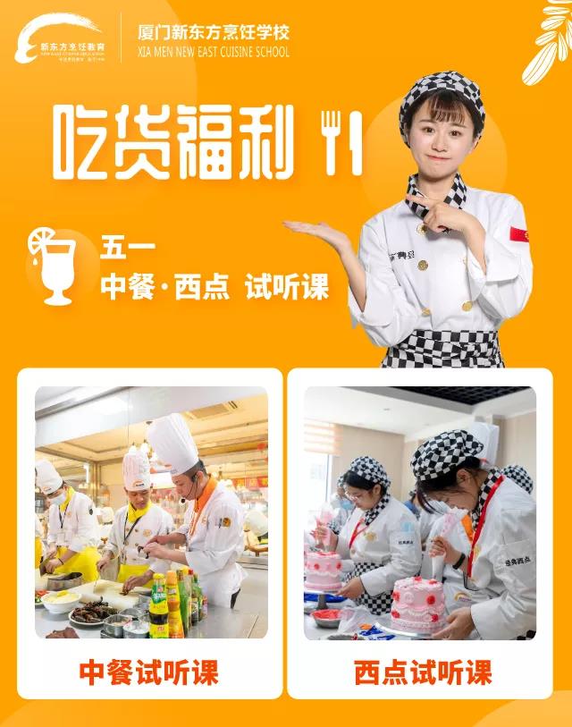 来厦门新东方烹饪学校,保证让你的五一假期有趣至极!美食吃起来,试听课学起来,好礼拿回家!