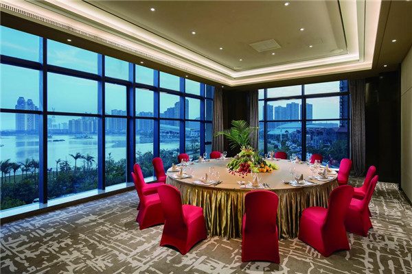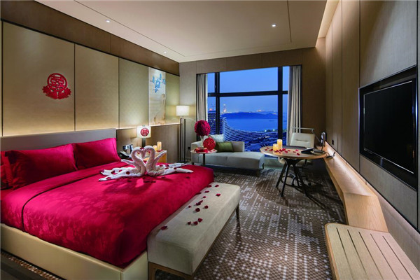 酒店拥有301间豪华舒适的客房及套房。宽敞舒适的豪华客房,设计典雅,舒适,设备齐全。高达90%的房间坐拥海景或湖景,超宽视野的落地窗让城市美景尽收眼底。酒店配备的高速网络接口,智能配置如电动窗帘、浴帘、智能播放器、智能马桶让您畅享智能化现代生活。