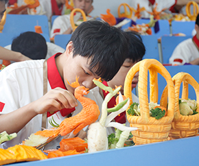 熟练掌握厨房基本技能(刀工、勺工);各式传统菜肴制作;烹饪原料加工、味汁调制;食品雕刻基础训练;菜系专题讲座、名师讲堂;军训;《烹饪工艺》《烹饪概论》。